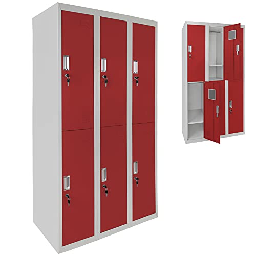 - Lieferumfang: 2x Stahl-Spinde mit je 6 Fächern | Lieferung erfolgt ohne Dekoration | 0,6 mm Stahlblech Kaltwalzung | Drehriegelschloss inkl. 2 Schlüssel pro Fach | Etikettenhalter pro Fach | Lüftungsschlitze | Öffnungswinkel von der Tür 130° |